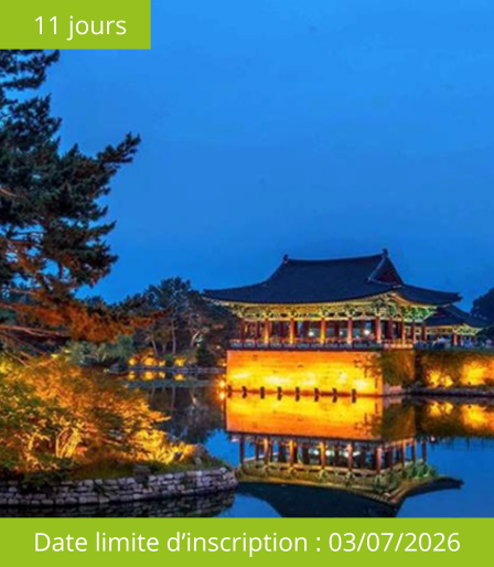 La Corée du Sud est un pays où il est possible de contempler divers paysages durant les quatre saisons. Splendides paysages, côtes spectaculaires, villages traditionnels, richesse de l’artisanat, gastronomie renommée, temples bouddhiques uniques, le tout baigné d’une atmosphère détendue et conviviale, invitant à la méditation et à la relaxation et agrémenté d’une expérience de vie traditionnelle. Comme autant d’instants magiques. Offrant au monde l’image d’une nation ultramoderne, la Corée a trouvé depuis quelques années, sa place dans la communauté et les médias internationaux. Mais pour qui connaît cette terre, les gratte-ciels de Séoul et la technologie de pointe cachent un univers intact, celui de pays du Matin Calme. Pays de contrastes où se mêlent modernisme et traditions millénaires, ce dragon économique possède une culture et une histoire vieille de cinq mille ans.